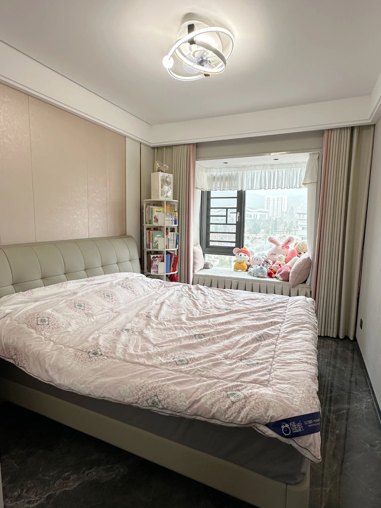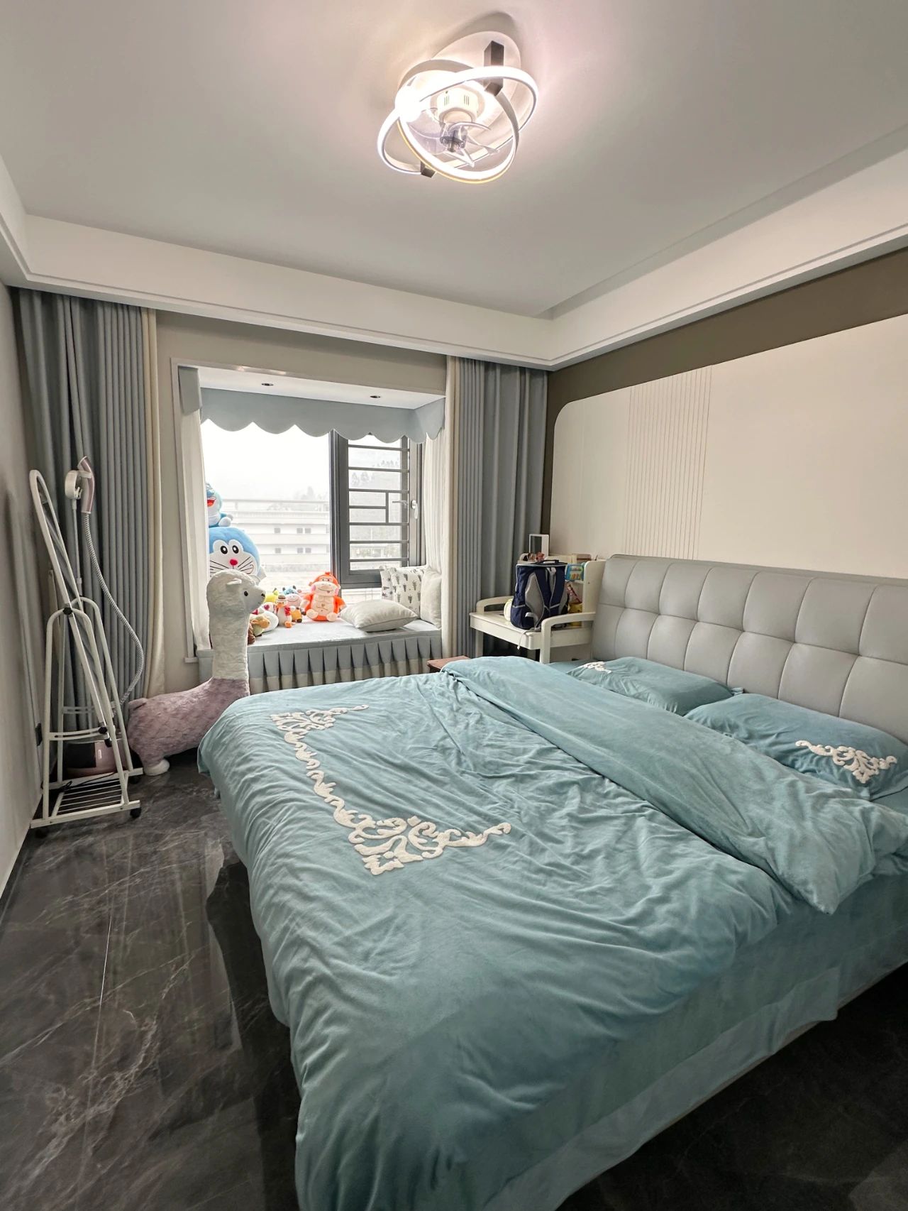 从公共区到私密空间,简约感就是家的留白。卧室的宁静感从高定系统门窗中体现,随心启闭,为惬意生活带来安全感、舒适感。闲暇时刻,居者可坐在飘窗静坐休憩,读一本书,欣赏窗外美景,让心情更愉悦。