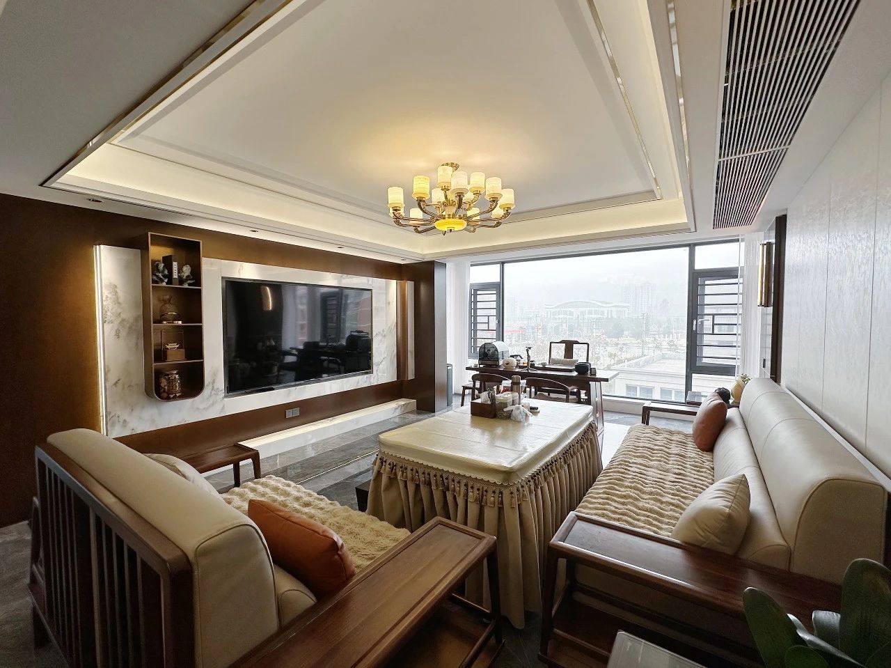 本案位于临武金叶小区,业主钟情于现代简约又具有新中式意境的生活空间。东方美学的现代演绎以简约内敛为核心,将经典融入生活,尽展精致典雅的独特魅力,同时通过大面积应用百利玛门窗,构筑巨幕级全景视野。