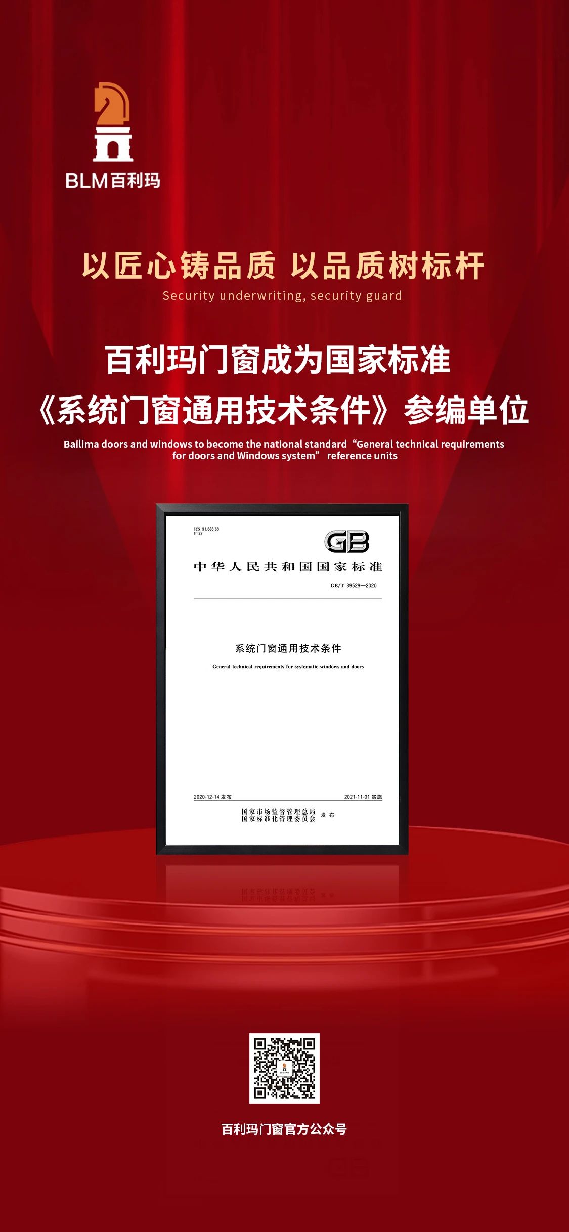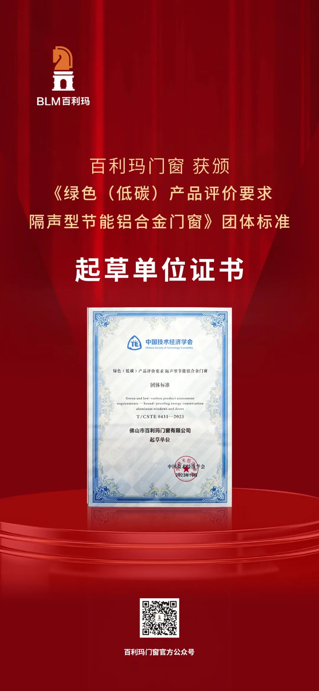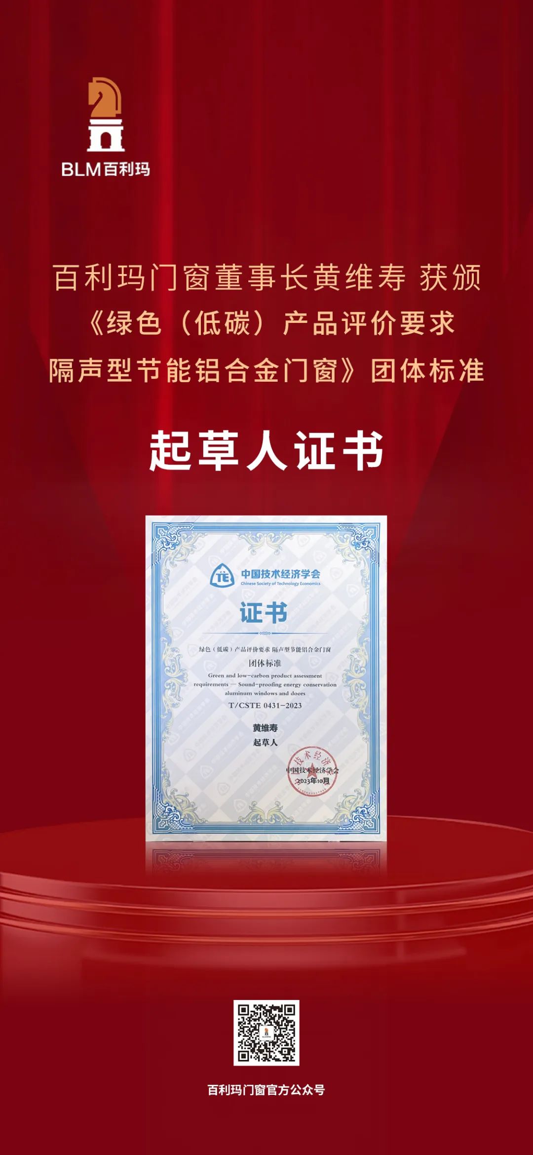 近年,百利玛获颁《系统门窗通用技术条件》、《绿色低碳产品评价要求 隔音降噪型节能铝合金门窗》等国家标准参编单位证书,黄董获颁“标准起草人”证书。我们始终践行绿色发展理念,不断优化产品品质,为消费者提供隔音性能强、安全性能高、密封性能佳、保温隔热效果显著的高品质门窗。