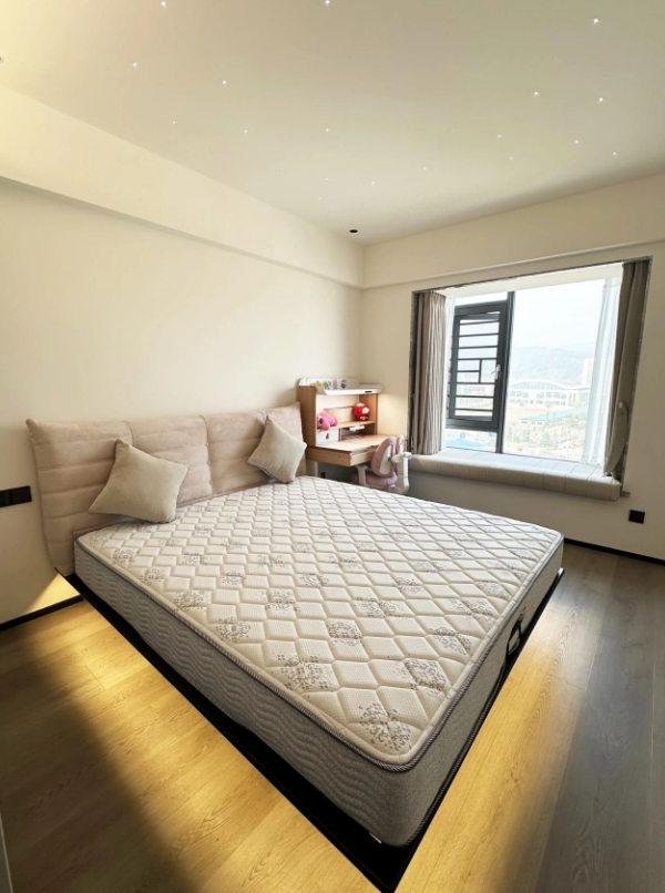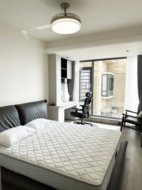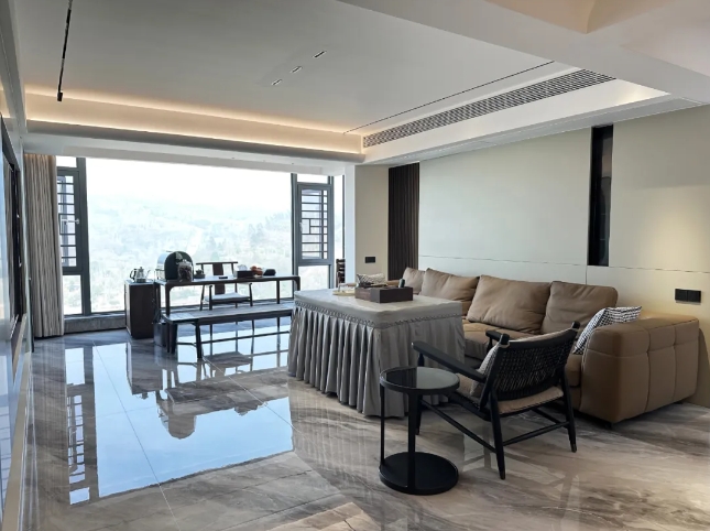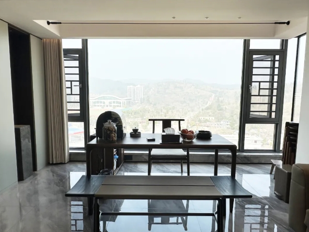 卧室的宁静感从高定的门窗中体现,随心启闭,为静谧生活带来安定感。大落地窗将室外景色纳入室内,增加自然之意;同时具备良好的隔音、节能、安全、防水性能,提升居住者舒适感和幸福感。