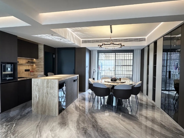 厨房餐厅一体,触及之处,皆是对生活的情感力表达。简约时尚的系统推拉门,让空间也得以延伸,采光超好,这里用餐的视角、聚餐的氛围都充满生活格调,不管是家人共聚还是亲友派对都能拥有极致的空间体验。