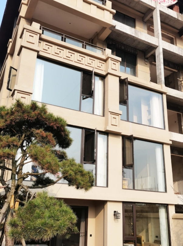 阳光通过高透光玻璃进入茶室,使空间澄静明朗,轻松营造出舒适轻松的洽谈休憩氛围,百利玛系统门窗拓宽视觉观感,产品外观简约大方,同时兼备防盗防撬功能,轻松打造舒适贴心的家居空间体验。