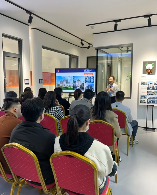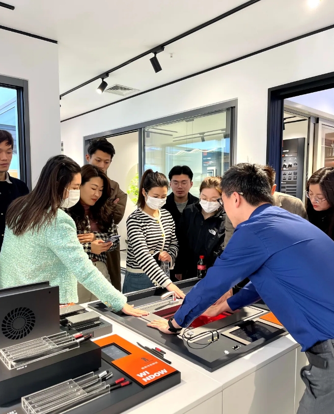 百利玛系统门窗成长学院负责人张君、区域经理邱春雨及滕州专卖店全体员工现场为设计师讲解百利玛产品技术优势,让更多的设计师对我司品牌定位、产品工艺、设计理念有更深的认识和了解。