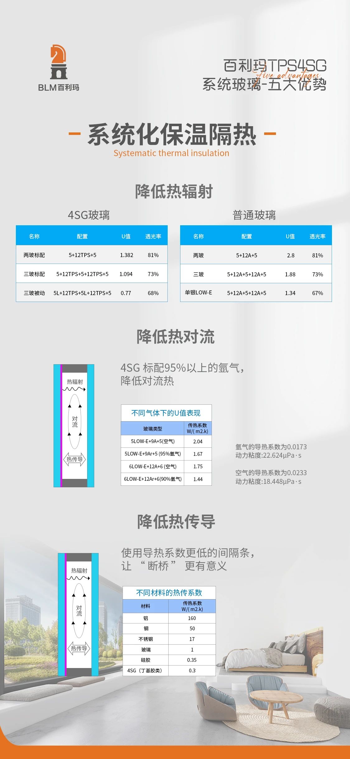 TPS 4SG玻璃凭借先进的保温隔热技术,有效降低热辐射、对流与传导,维持室内恒温。这不仅确保了室内的舒适度,更显著降低了空调、取暖等能源消耗,实现节能降耗的理想生活。