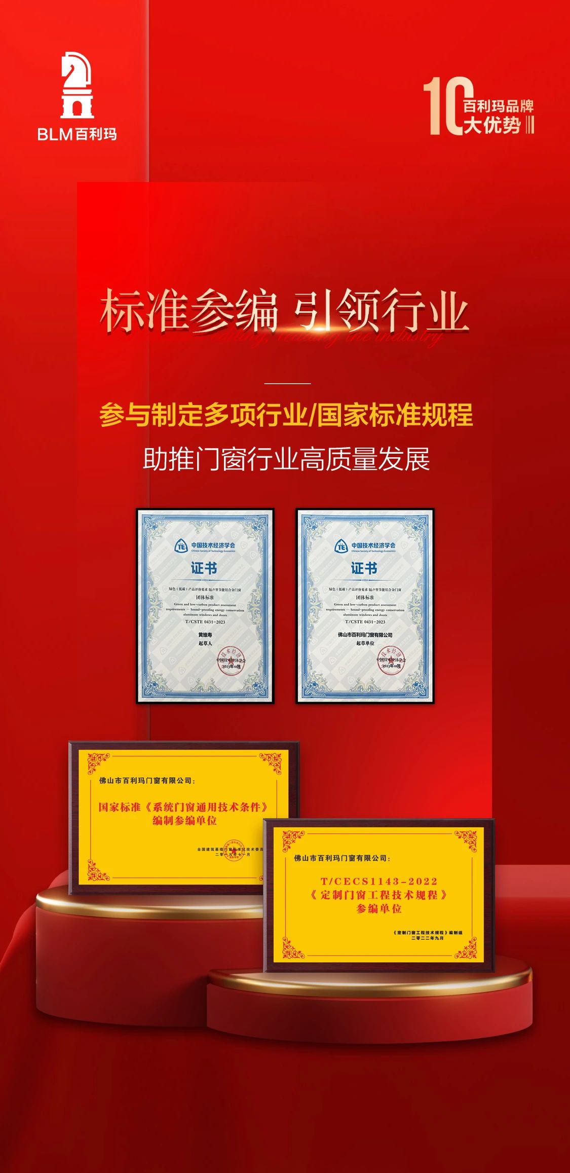 我们积极参与制定多项行业/国家标准规程,推动系统门窗行业高质量发展。百利玛门窗以专业技术和卓越品质为行业树立标杆,成为中国系统门窗行业的引领者之一。