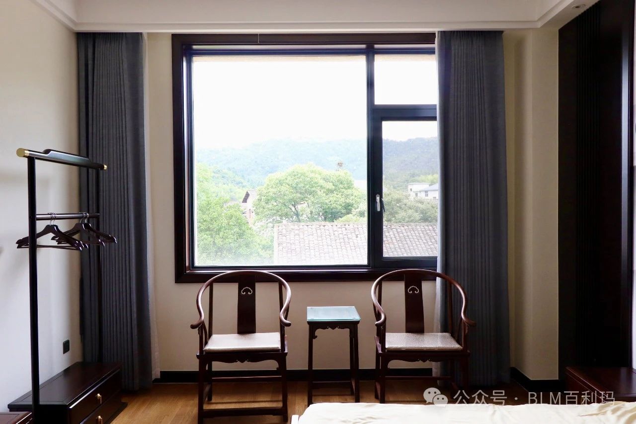 窗外绿意盎然,卧室空间同样采用玛丽昂系统窗,其采用汽车级钢化玻璃,搭配系统密封结构设计,隔音效果卓越。它巧妙地将自然美景与室内环境融为一体,让屋主在宁静中感受到自然盎趣。