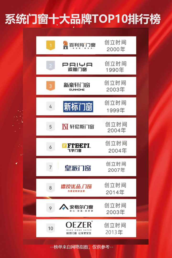 系统门窗十大品牌TOP10排名(2024最新)是行业一线门窗品牌,各品牌有各自的特色和优势,门窗选购和门窗加盟代理可根据自身需求参考选择。