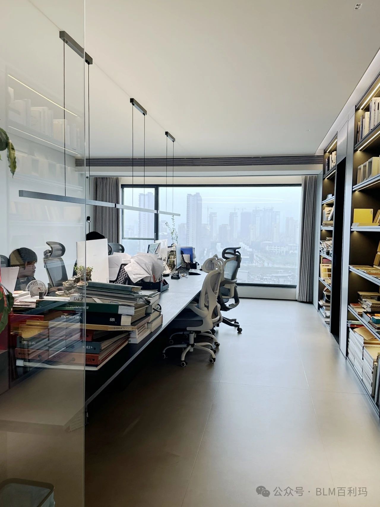 办公区同样应用超大落地窗,此处成为了设计团队灵感与视野的交汇点,站在窗前,俯瞰城市繁华,感受大自然的壮阔,在无限的空间中自由畅想。