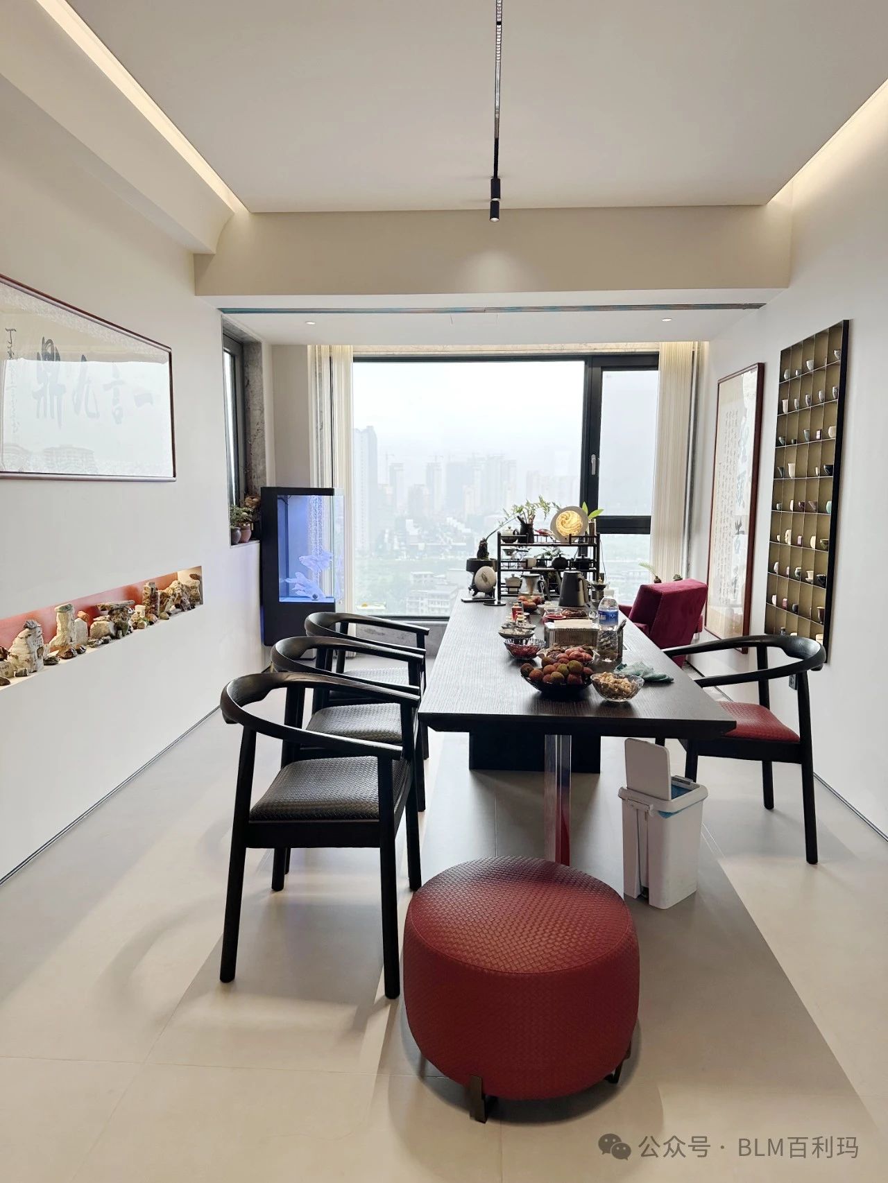 茶室洽谈区是该案例中一处隐秘而宁静的角落。这里应用百利玛玛丽昂系统窗,以其多腔体结构设计、全方位系统注胶、四道密封结构设计等先进技术,为客户打造了一个静谧舒适的洽谈环境。