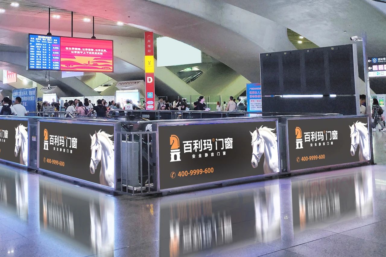 广州南站是中国高铁客流第一站,大湾区核心枢纽,全国“八纵八横”核心站之一。作为世界级综合交通枢纽,百利玛门窗通过高铁、机场等核心传播平台,增强「安全静音门窗」的品牌理念宣传,实现产品价值和巨量流量双渗透,持续扩大品牌影响力。
