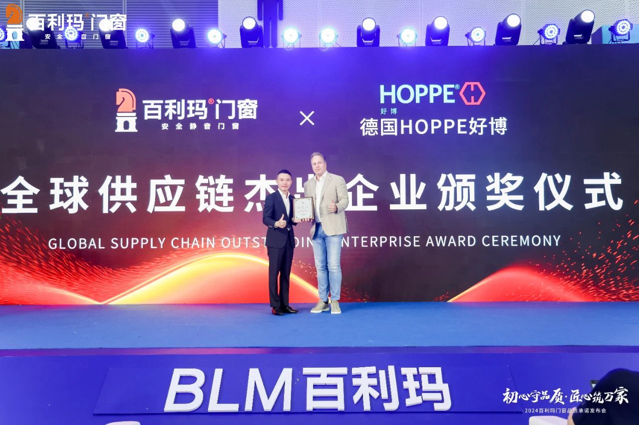 同时,会上还颁发了“全球供应链杰出企业”荣誉证书予好博、格屋、泰诺风、海达,表彰其卓越贡献与紧密合作。此举旨在深化战略合作,携手并进,共同打造更高品质的门窗产品,引领行业迈向新高度,为全球用户创造更加美好的居住体验。