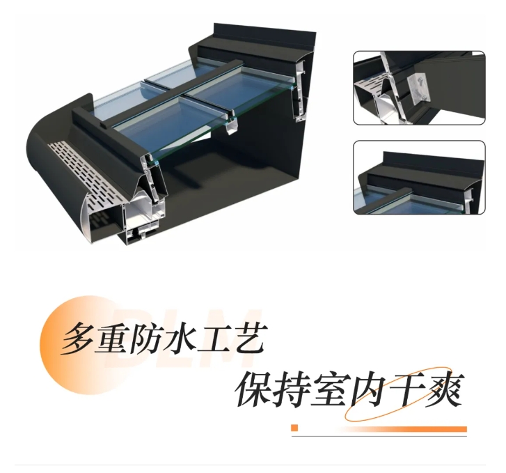 阳光房采用多重防水工艺:靠墙防水板防渗,前梁水槽间专设防水,开槽+结构胶严控细节,确保滴水不漏。完备排水系统,水槽、管件齐全,过滤网防堵,排水无忧。立面窗采用专利等压排水,尽显品质匠心,让室内保持干爽舒适。