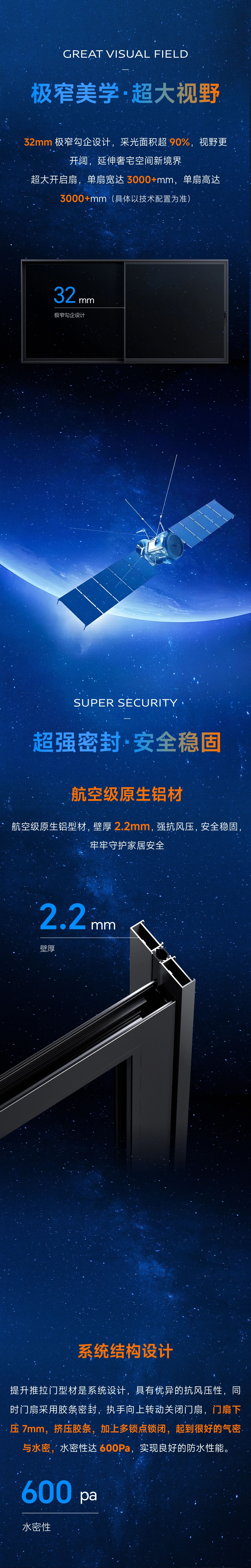 银河提升推拉系统,整体采用系统注胶工艺,增强整体门框强度,安全稳固,为家带来更硬核的守护。
