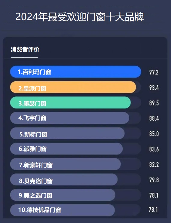8、贝克洛门窗:贝克洛门窗以其独特的设计,成为行业内的佼佼者。其门窗产品不仅外观时尚美观,而且性能优异,深受消费者喜爱。