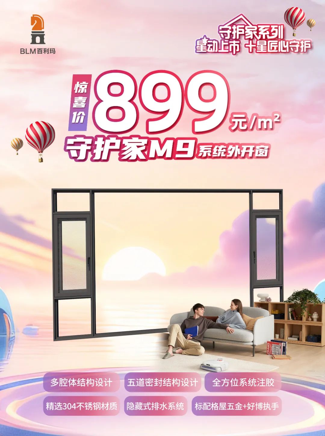 百利玛系统门窗「守护家系列」899元/㎡,品质星品实利抢购