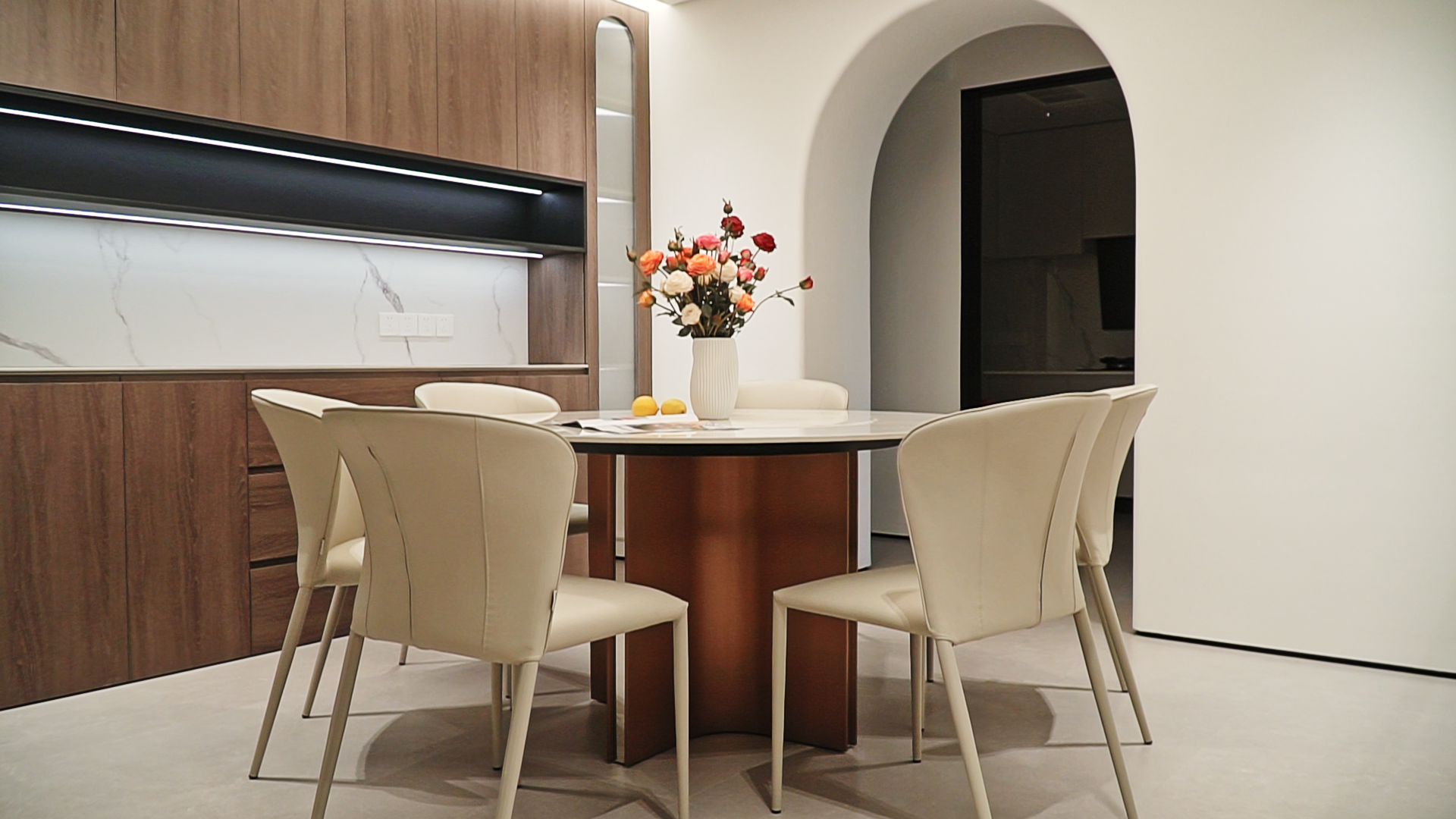 客餐厅开放式布局,拓宽了空间的视觉边界,营造出浓厚的家庭氛围。在此,与家人品尝美食的美好时光悠然流淌,欢声笑语中编织着生活的温馨篇章。每一个角落都充满了爱与关怀,让家成为最温暖的港湾。