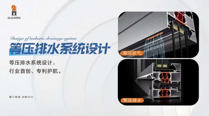 门窗水密性关乎室内干爽,百利玛门窗创新推出等压排水系统,设置等压进气装置,实现室内外气压平衡,使腔内与室外气压保持相等,从而确保了排水更为彻底,提高了整窗的水密性能。