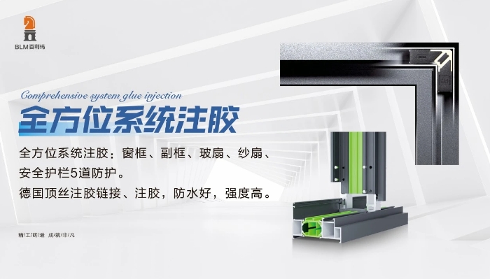 百利玛系统门窗凭借其对品质的坚持与追求,采用了全方位系统注胶技术,从窗框、副框、玻扇、纱扇,安全护栏五道防护,每一处细节都经过精密注胶处理,确保门窗的防水及密封性达到最佳状态,为您的家居生活提供更为可靠的保障。