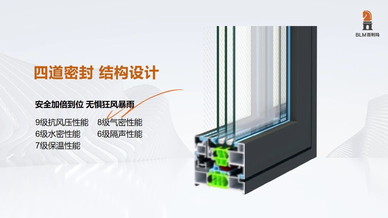 在秋冬季,室内外温差较大,密封性较差的窗户会在不经意间“偷走”暖气,尽管空调、取暖器轮番上阵,电费蹭蹭上涨,但房间还是总感觉冷飕飕。百利玛奢悦系统内开窗采用四道密封结构设计,安全加倍到位,无惧狂风暴雨,有效解决窗户漏风漏水问题,真正做到“严丝合缝”,防水防潮性能更佳。