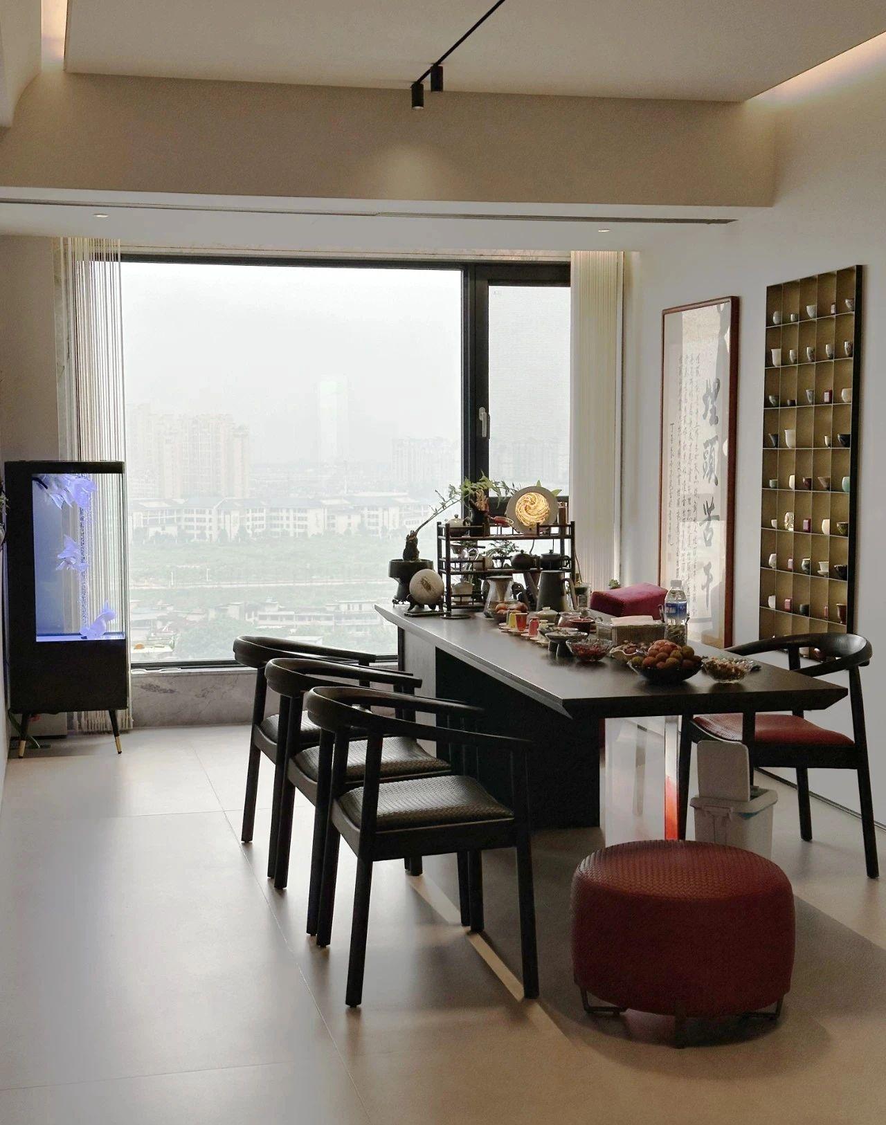 对于热爱茶文化的居者,可将阳台改为充满韵味的茶室,一壶清茶,袅袅轻烟,时光在此悠然慢煮。偷得浮生半日闲,外界喧嚣渐远,内心归于宁静。于茶香氤氲中,品味生活的恬淡与自在,让心灵得以真正的休憩与滋养。