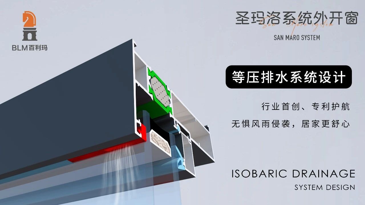 值得一提的是,百利玛圣玛洛系统外开窗采用行业首创的等压排水系统设计,科学运用等压原理,水、气通道集成设计在强暴风雨压力下,高效阻风,排水更顺畅彻底,防止雨水倒灌,即使在恶劣暴风雨天气也能保持家居干爽舒适。