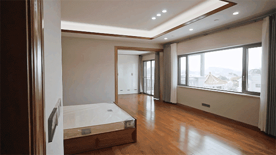主卧空间回归主人向往的舒适柔和状态,选用百利玛森语系统中窄提升门,精选航空级原生铝型材,安全牢固,抗风压性能卓越;搭配优质提升推拉系统,让整体门框强度倍增;满足超大视野、安全防护、高效静音、节能降耗的居住体验。