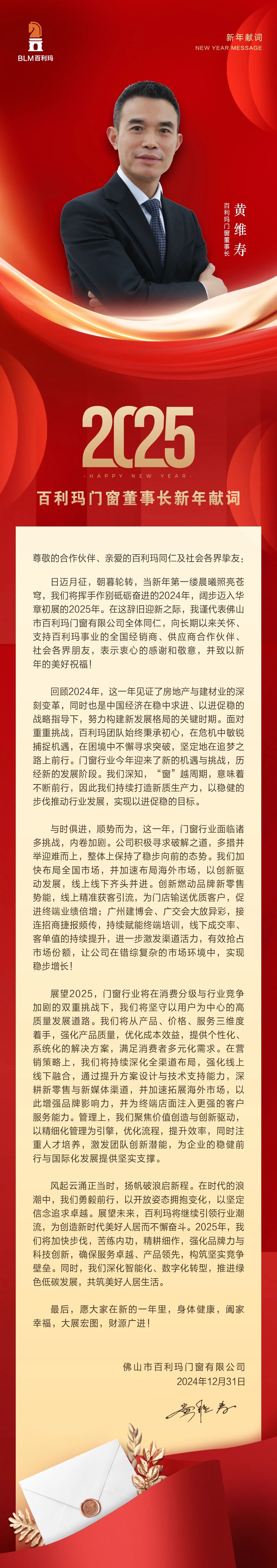 奋楫笃行·盎然向前 | 百利玛董事长黄维寿2025新年献词