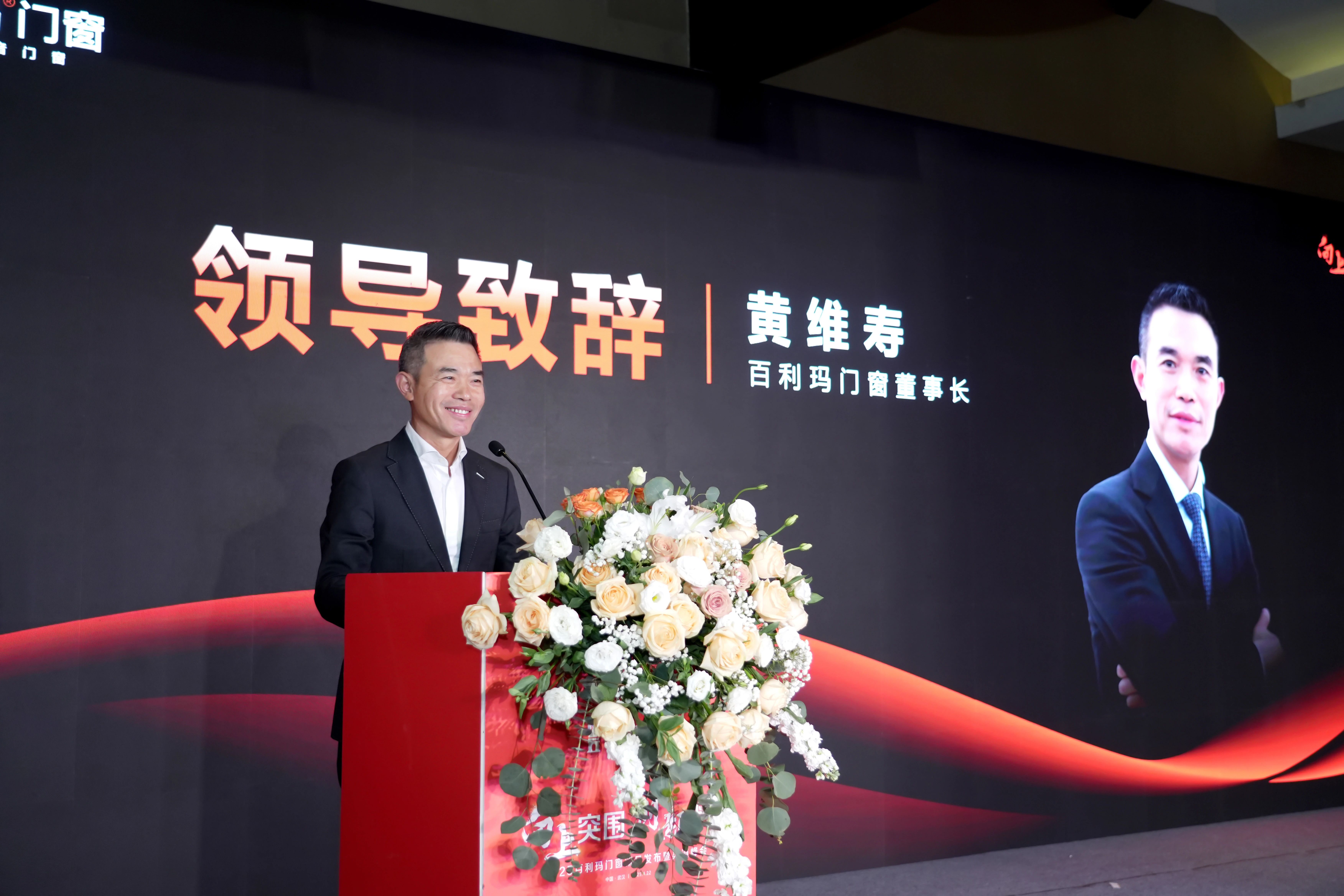 峰会伊始,百利玛门窗董事长黄维寿先生致辞表示,在行业竞争加剧、消费需求分级的当下,企业需紧抓“新政策、新媒体、新人群、新技术”四大机遇,坚守长期主义。黄董指出:“危机中育新机,变局中开新局。未来,百利玛将以品质为基、创新为剑,在千亿门窗市场中开拓新程!”