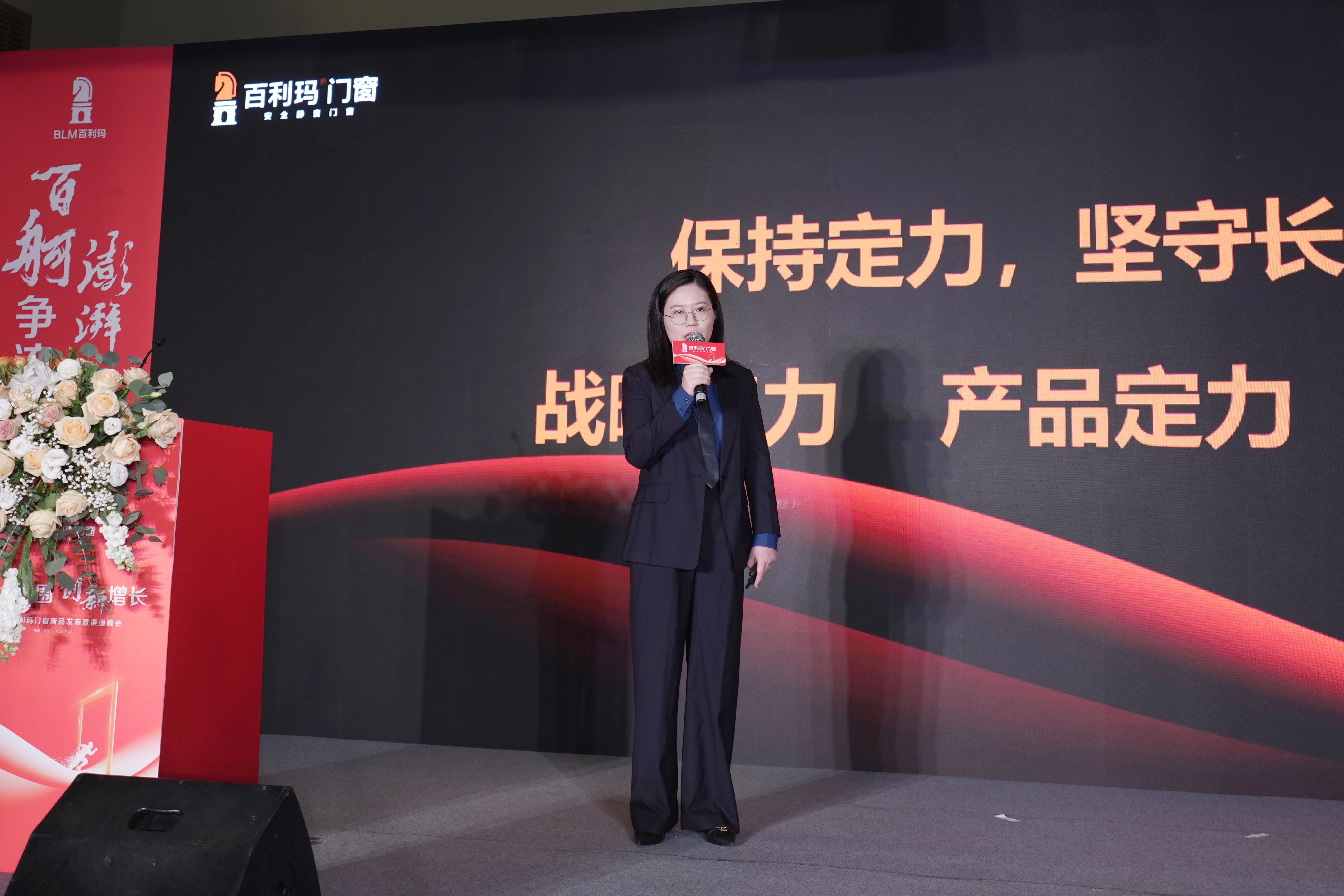 随后,百利玛门窗副总经理黄丽玲女士作《保持定力·坚守长期主义》主题分享。在分享中,她深入剖析了市场波动下企业的生存法则。她指出,市场环境复杂多变,企业唯有保持定力,坚守长期主义,才能在风云变幻的市场中站稳脚跟,实现可持续发展,强调“唯有定力方能穿透周期”,为经销商提供了创新的思路。