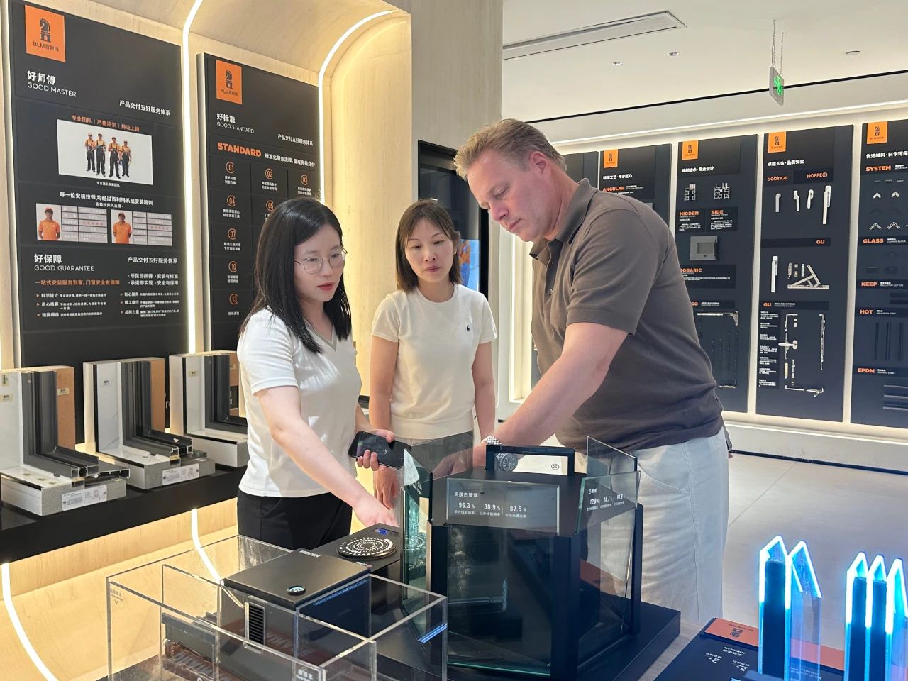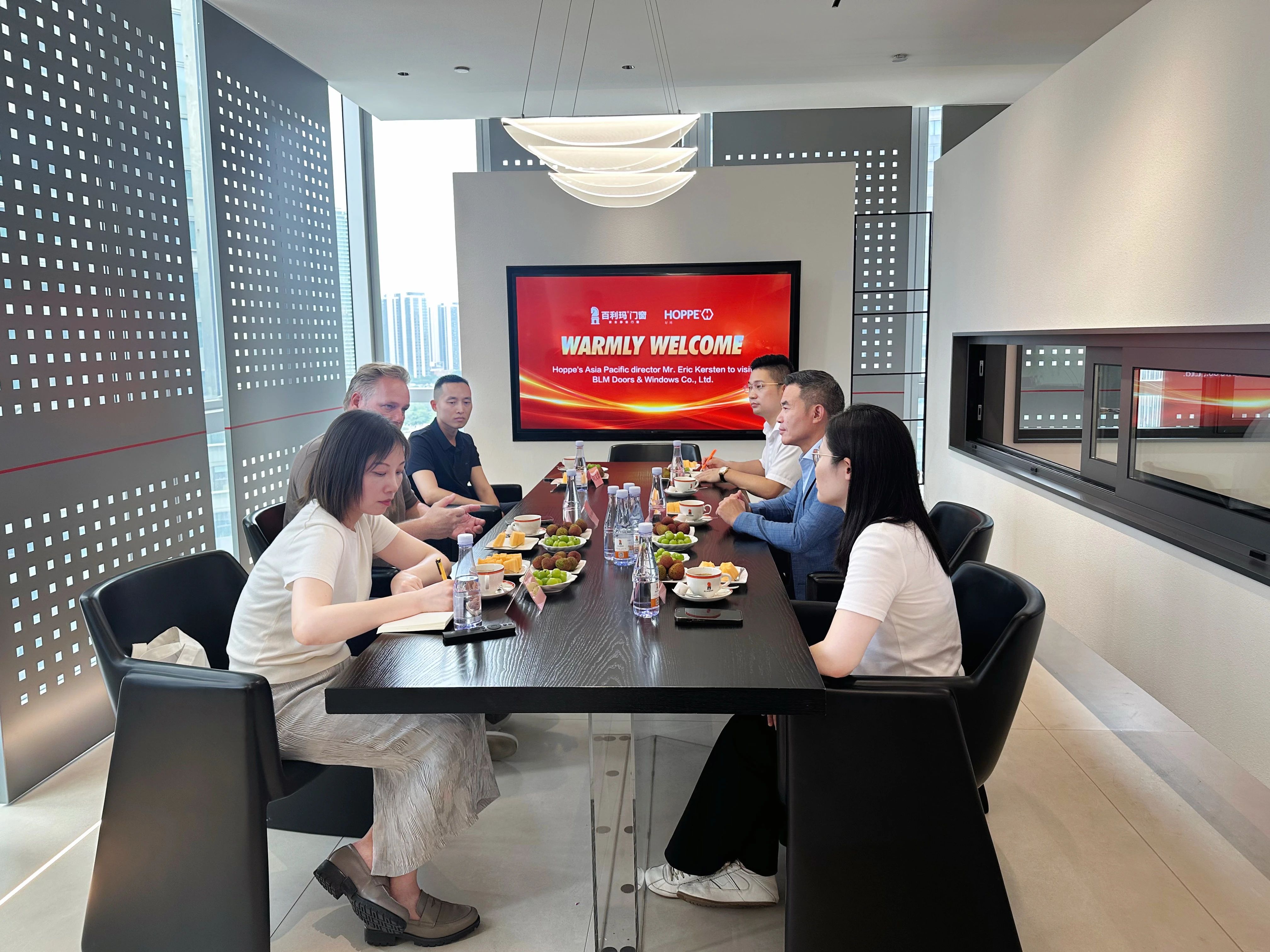 6月2日,德国HOPPE好博集团董事会成员、亚太区总裁Eric Kersten先生率团队莅临百利玛参观指导,中国门窗十大品牌百利玛门窗董事长黄维寿、副总经理黄丽玲、营销副总经理刘增钿热情接待。双方高层围绕产品创新、技术升级及市场趋势展开深度交流,共绘门窗行业未来发展蓝图,标志着战略伙伴关系迈向新高度。