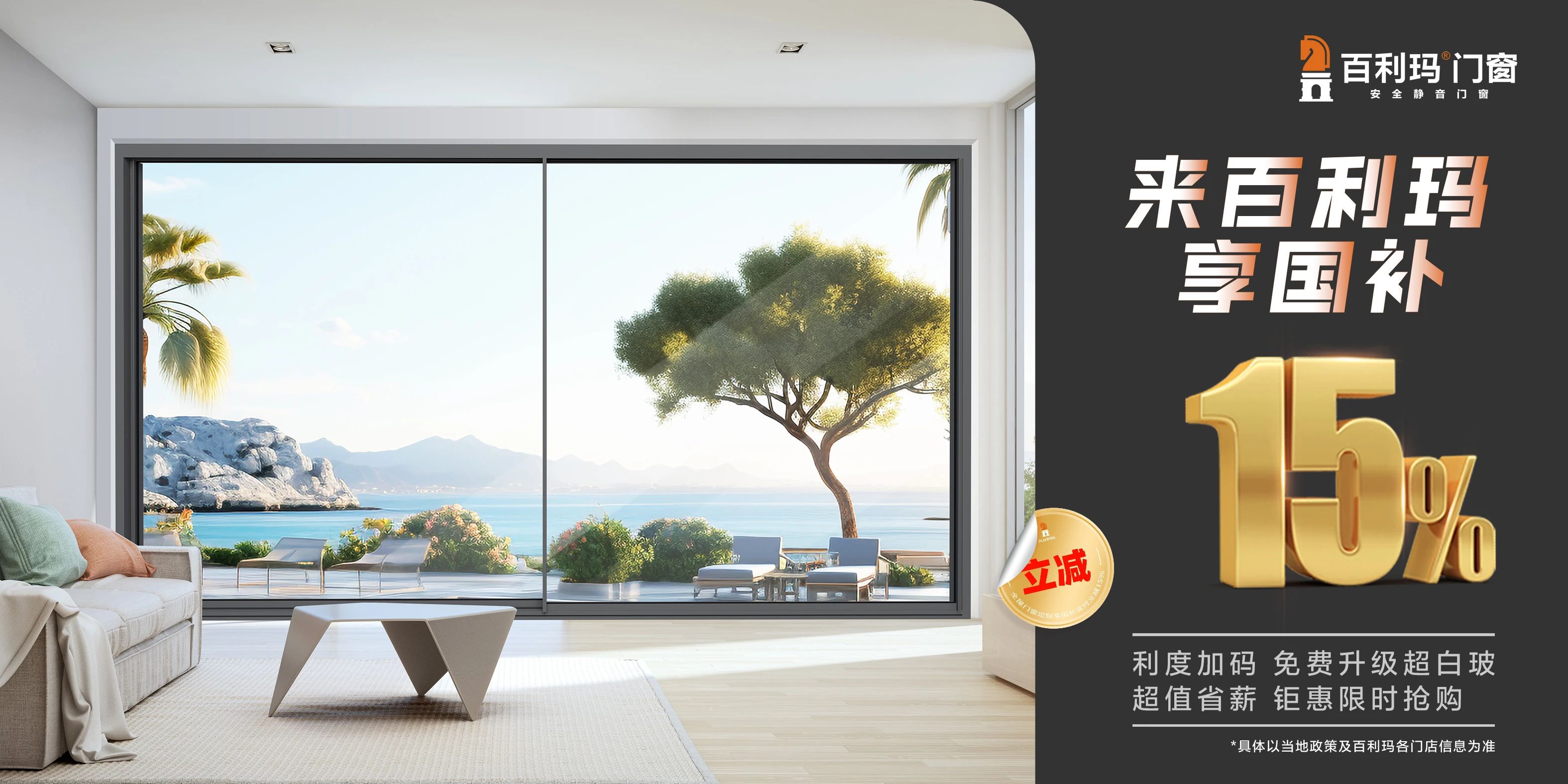 质造好生活,焕新正当时!欢迎莅临全国百利玛门店,臻选门窗系统搭配政企双重补贴,以匠心品质与贴心服务,助您打造更安全、更舒适、更高颜值的理想居所。更多优惠细则,详询百利玛全国各旗舰店,把握限时福利,开启奢适生活新篇章!