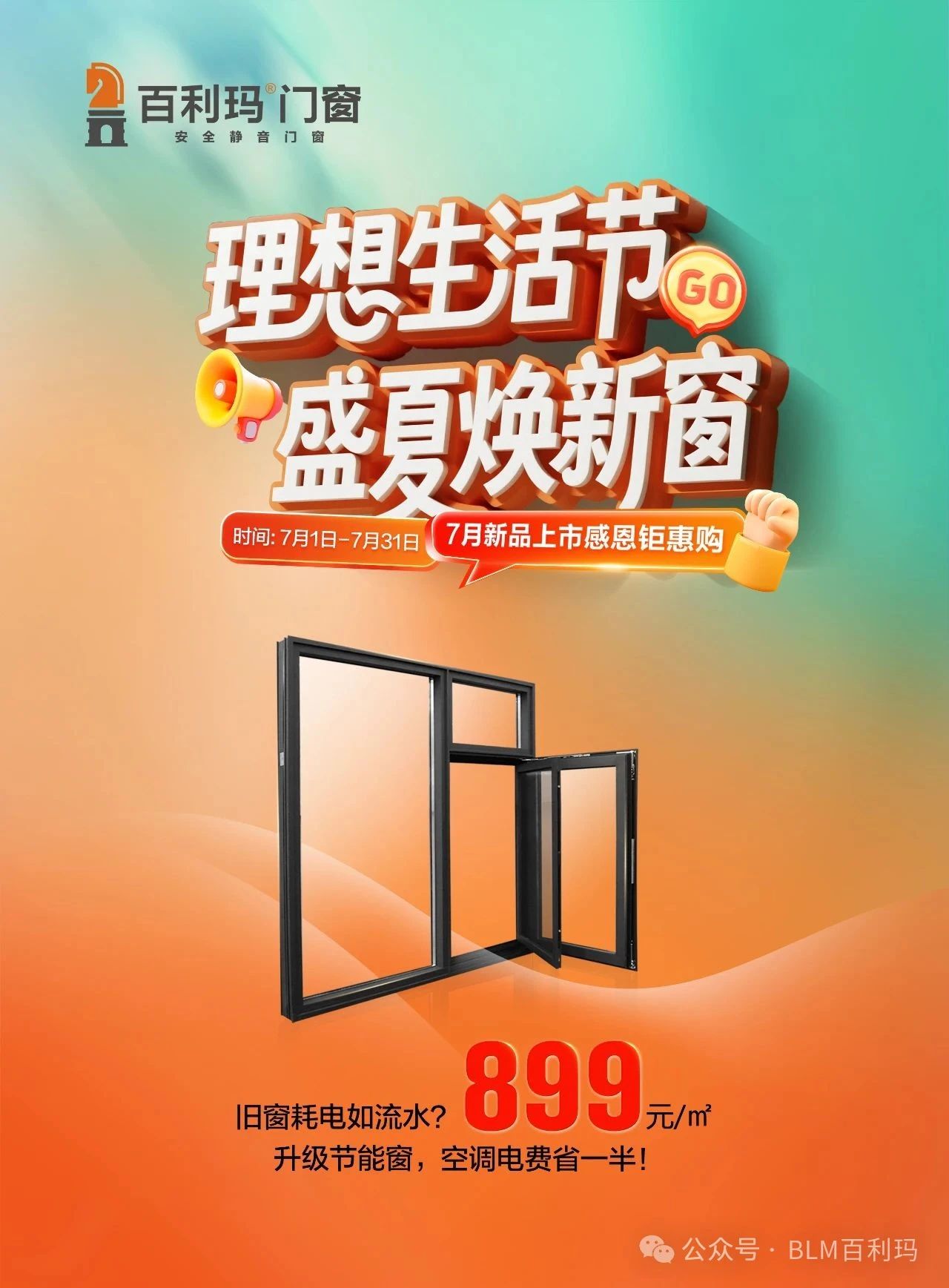7月1日-31日,百利玛门窗“理想生活节·盛夏焕新窗”全国钜惠活动火热进行中。活动期间,旧窗焕新升级节能系统门窗,可享节能降耗、静音安全双重优势,空调电费最高省一半。部分城市更可叠加政府补贴与品牌让利,多重优惠助力品质升级。诚邀您焕新门窗,开启舒适人居新体验。