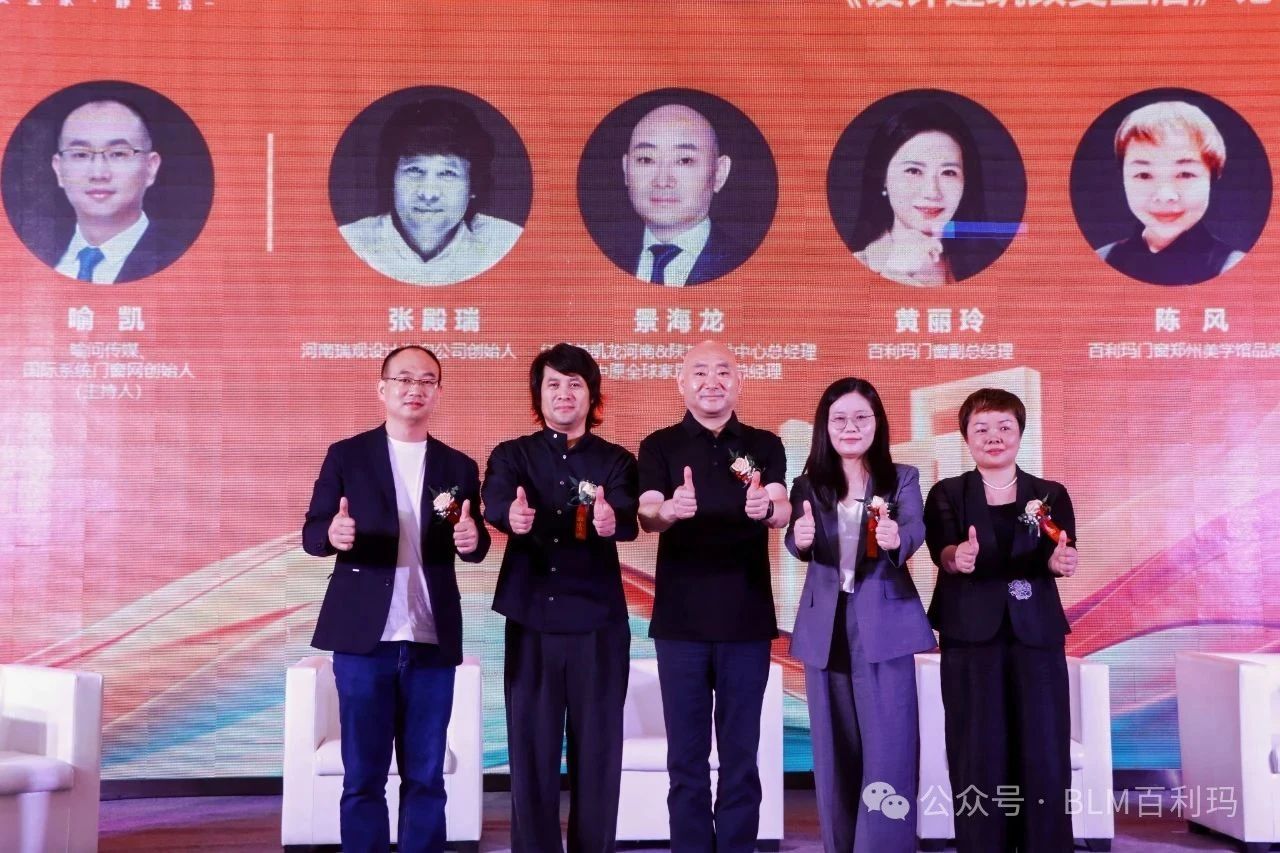 红星美凯龙河南&陕甘营发中心总经理兼中原全球家居1号店总经理景海龙,百利玛门窗董事长黄维寿、副董事长熊秋梅,国家建材质检中心副主任、河南省家居建材质检协会秘书长张自端,河南省陈设艺术协会主席曾志刚,红星美凯龙中原全球家居1号店常务副总经理程鹏,河南瑞观设计咨询公司创始人张殿瑞,百利玛门窗副总经理黄丽玲、范玉成、常务副总经理凌云青,郑州美学馆总经理黄正生、品牌主理人陈风等领导嘉宾及经销商代表出席盛会。