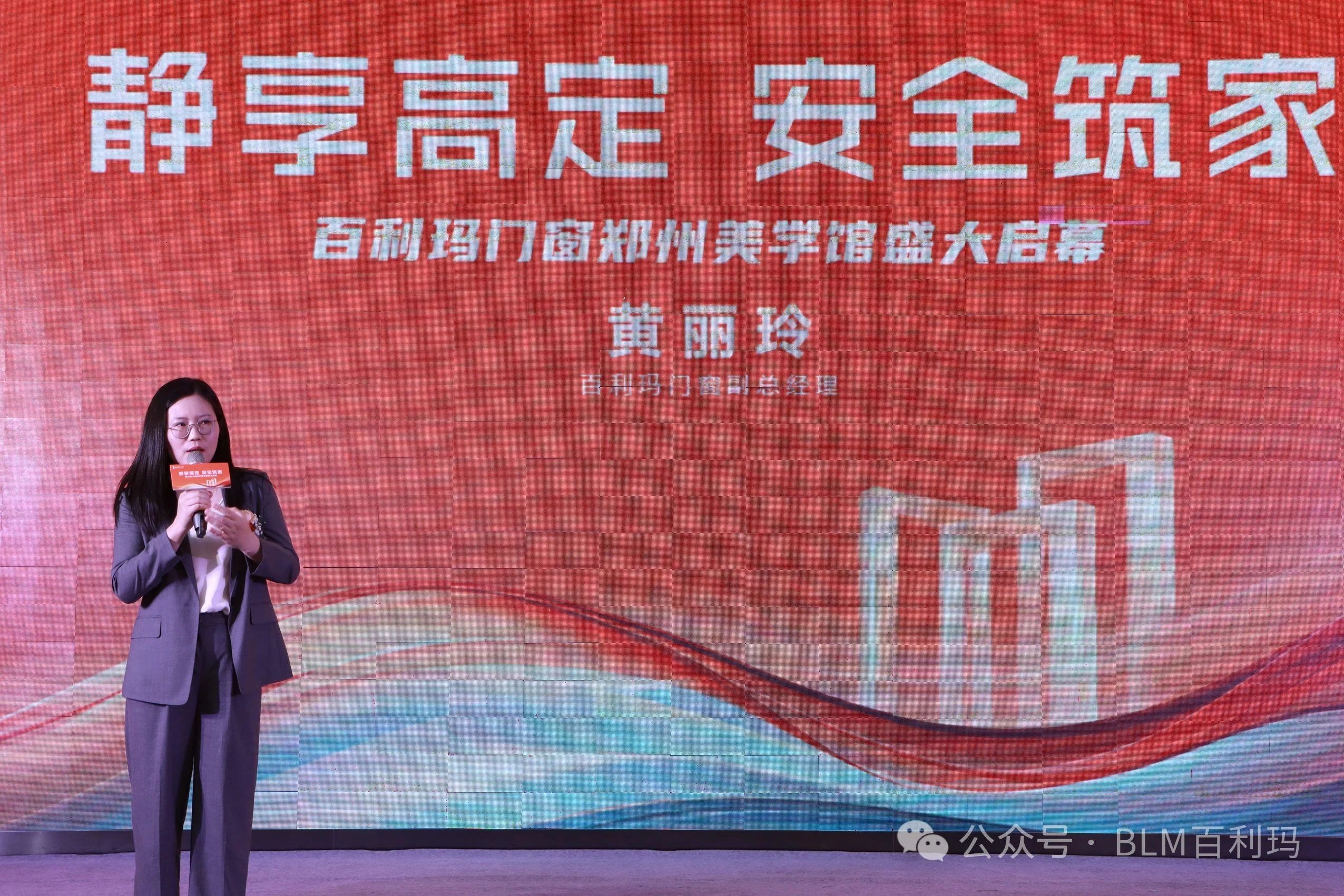 百利玛门窗副总经理黄丽玲女士作《百利玛品牌文化、价值介绍》主题分享。她详细阐述了品牌理念及新店开业的意义与价值,并表示百利玛将一直致力于提升品牌影响力和知名度,通过线上、线下多维度赋能终端经销商精准引流获客,为现场嘉宾提供了宝贵的市场洞察和营销策略。