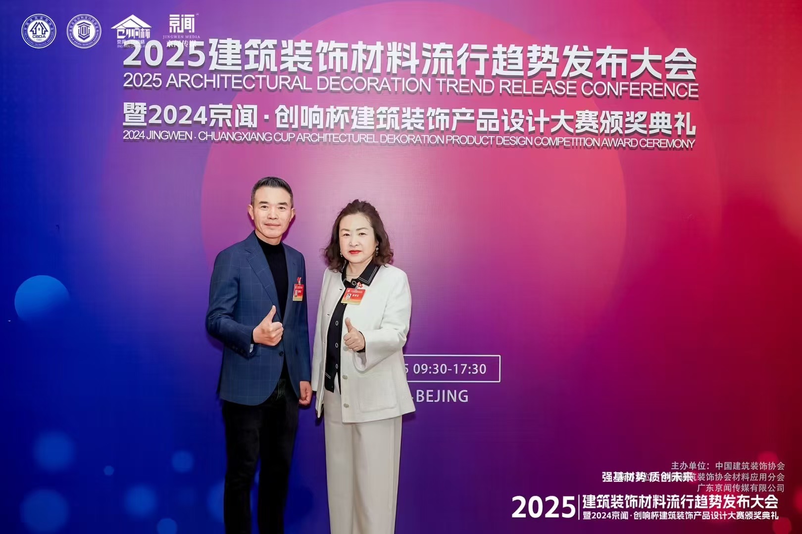 1月5日,由中国建筑装饰协会主办,中居文化战略合作的“2025建筑装饰材料流行趋势发布大会暨 2024京闻·创响杯建筑装饰产品设计大赛颁奖典礼”在全国人大会议中心隆重召开。