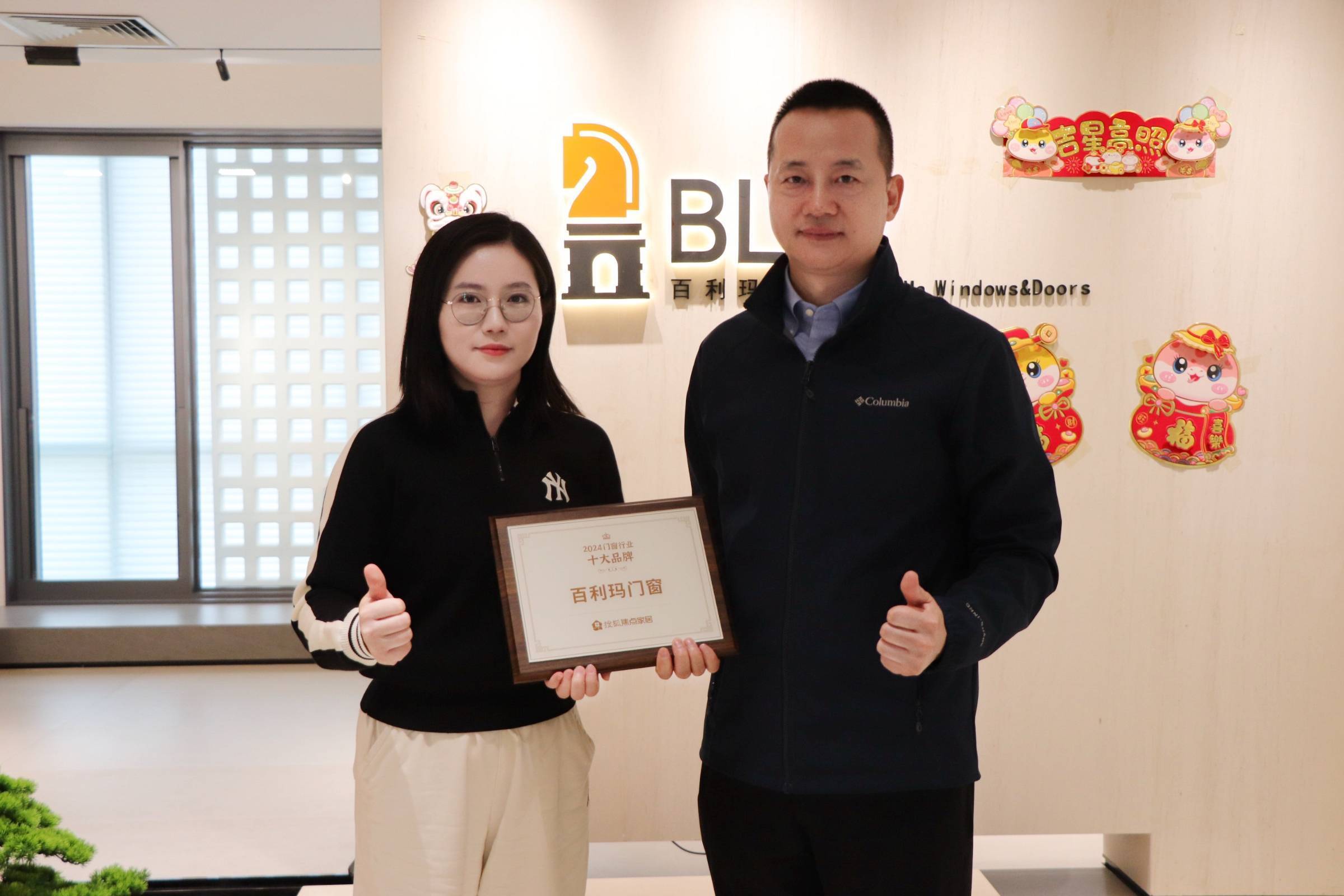 2025年2月19日,百利玛门窗被授予“2024门窗行业十大品牌”荣誉奖牌。搜狐焦点家居全国总经理郑海云与百利玛门窗副总经理黄丽玲亲切合影,共同记录下这一荣耀时刻。这一奖项由搜狐集团联合权威行业协会发起,从市场、创新、财务及社会贡献四大维度综合评估,旨在表彰行业标杆企业。门窗十大品牌百利玛凭借其深耕门窗领域25年的技术积淀与创新实力脱颖而出,成为家居行业高质量发展的典范代表。