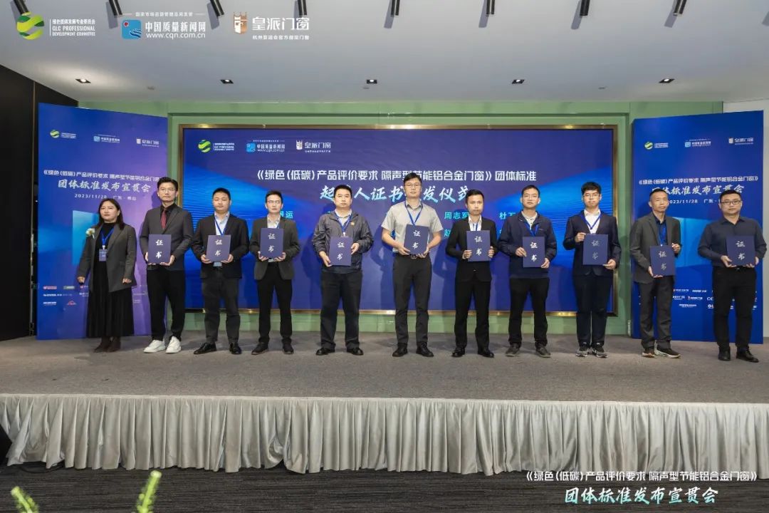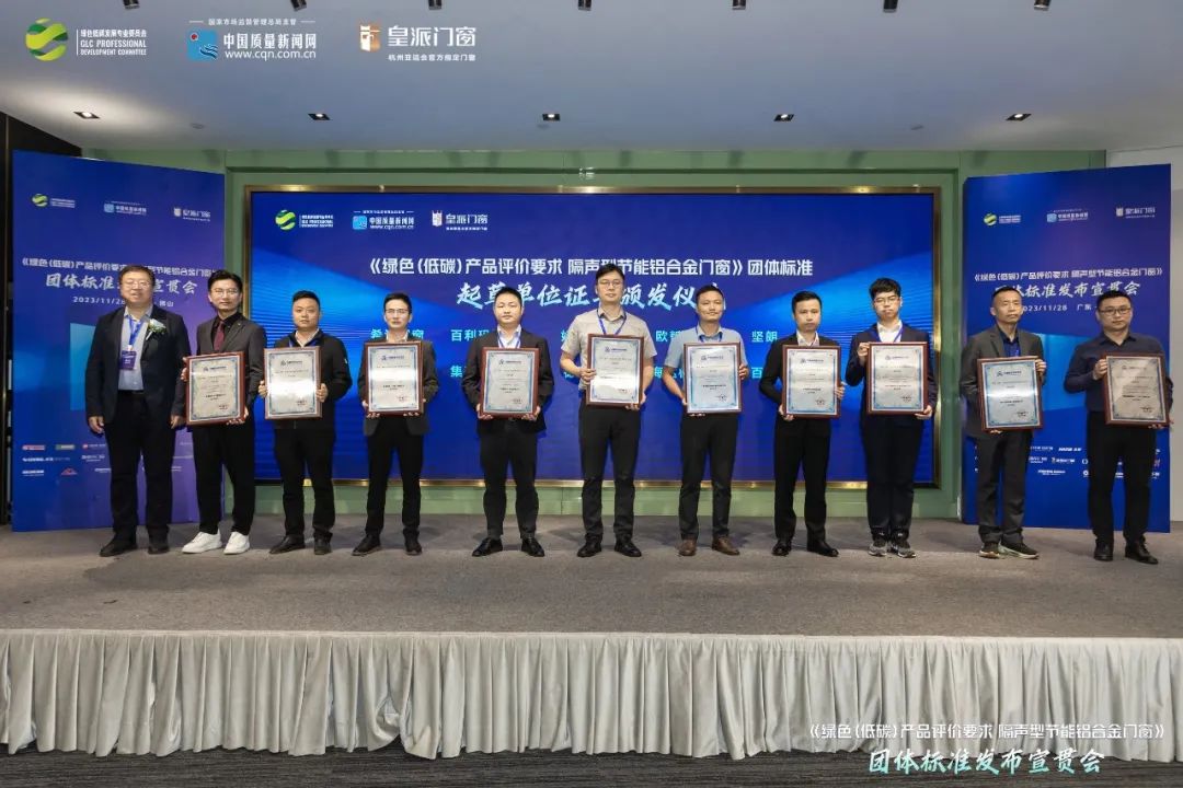 我司团队在历时2年的参编过程中,积极开展行业调研、发表行业发展意见,参与会议评审,加快团体标准的修改完善,与各单位一起积极推进标准落地。在团标宣贯会上,百利玛门窗荣膺由中国标准化协会颁发的《绿色低碳产品评价要求 隔音降噪型节能铝合金门窗》“标准起草参编单位”牌匾和证书;百利玛系门窗董事长黄维寿获颁“标准起草人”证书。