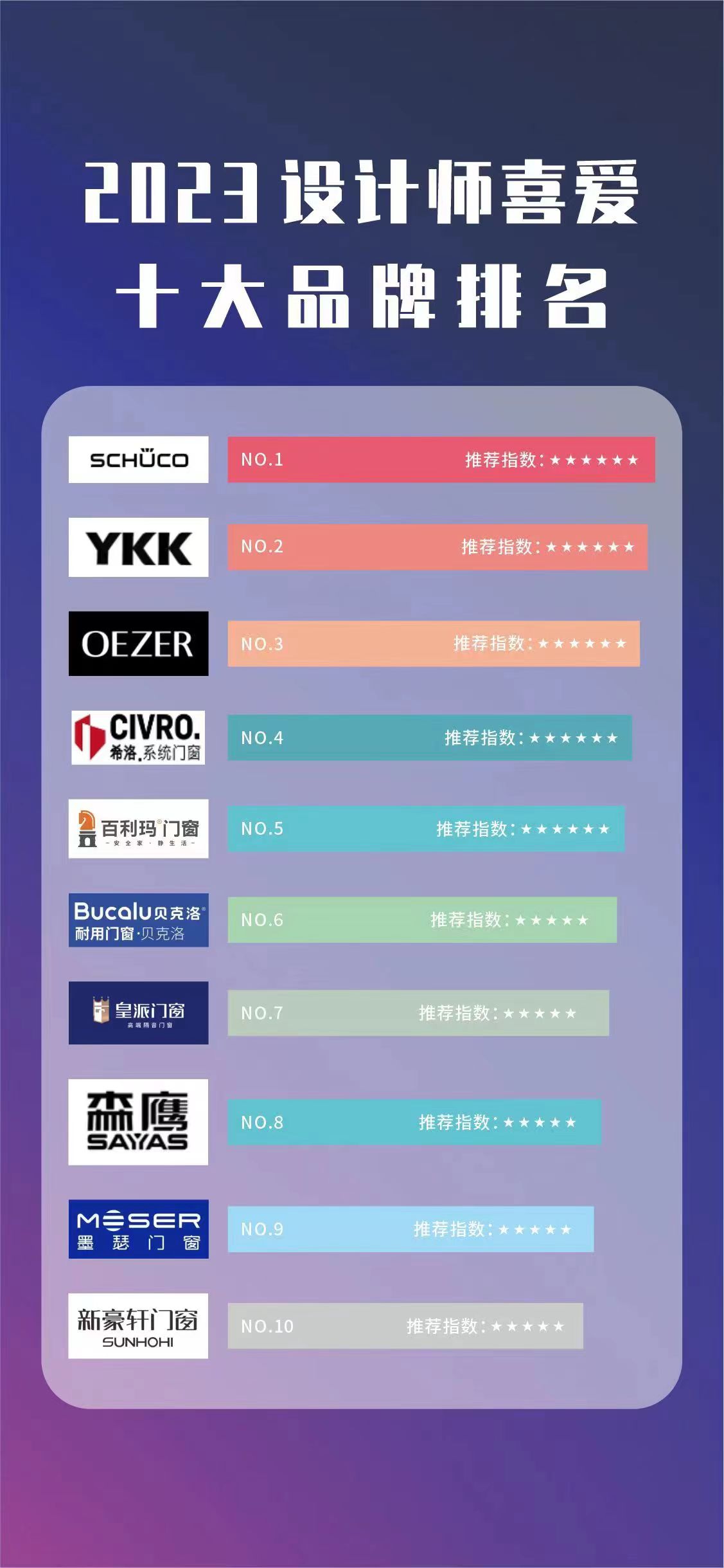 以上就是2023年最具设计感的门窗十大品牌,不仅用户喜欢,在设计师圈子内也是赞不绝口,如果想要寻找设计亮眼的门窗,可以参考一下。