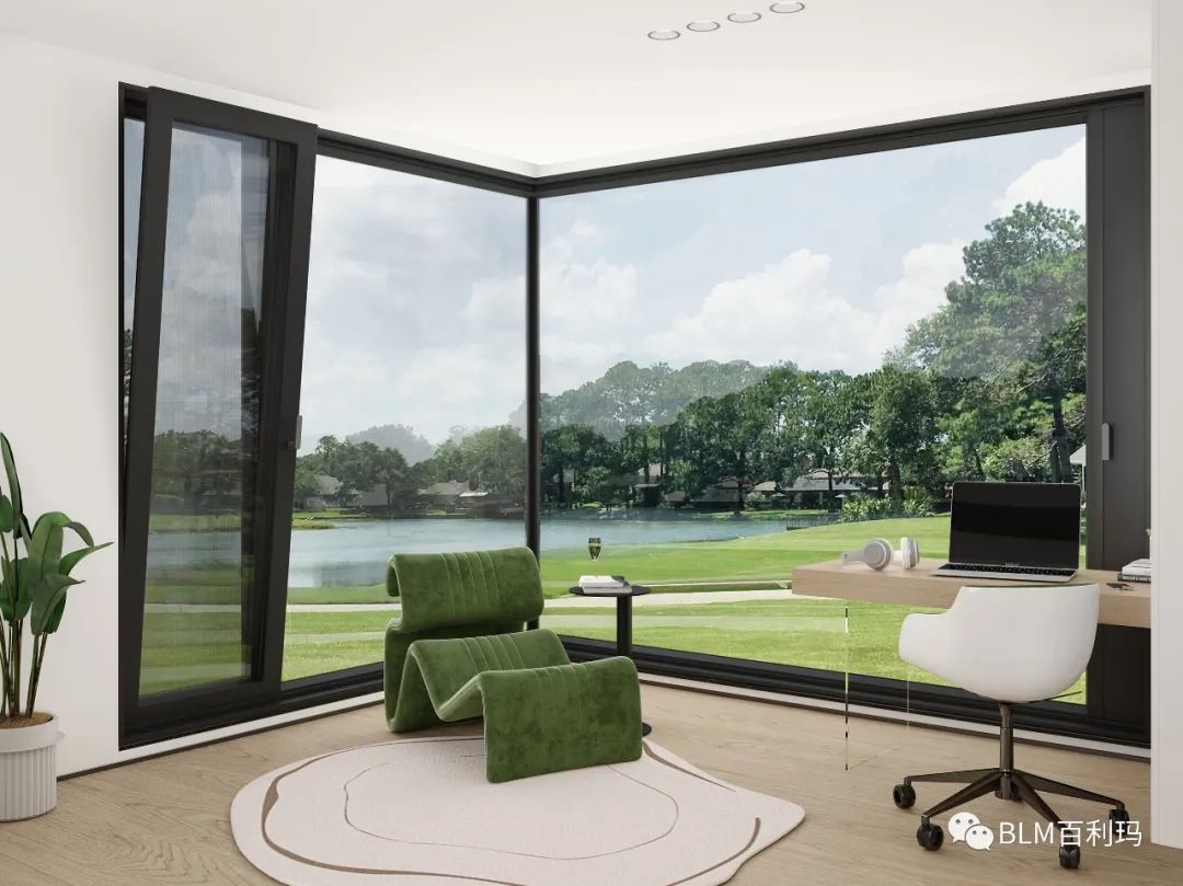 将相邻区域打造成开放式空间,可降低紧凑感,实现空间“1+1>2”的扩增视觉效果。全屋陈设有序,整体简介更显开阔。百利玛系统门窗别具一格的设计,用心打造美好生活,为您筑就温馨舒适的家。