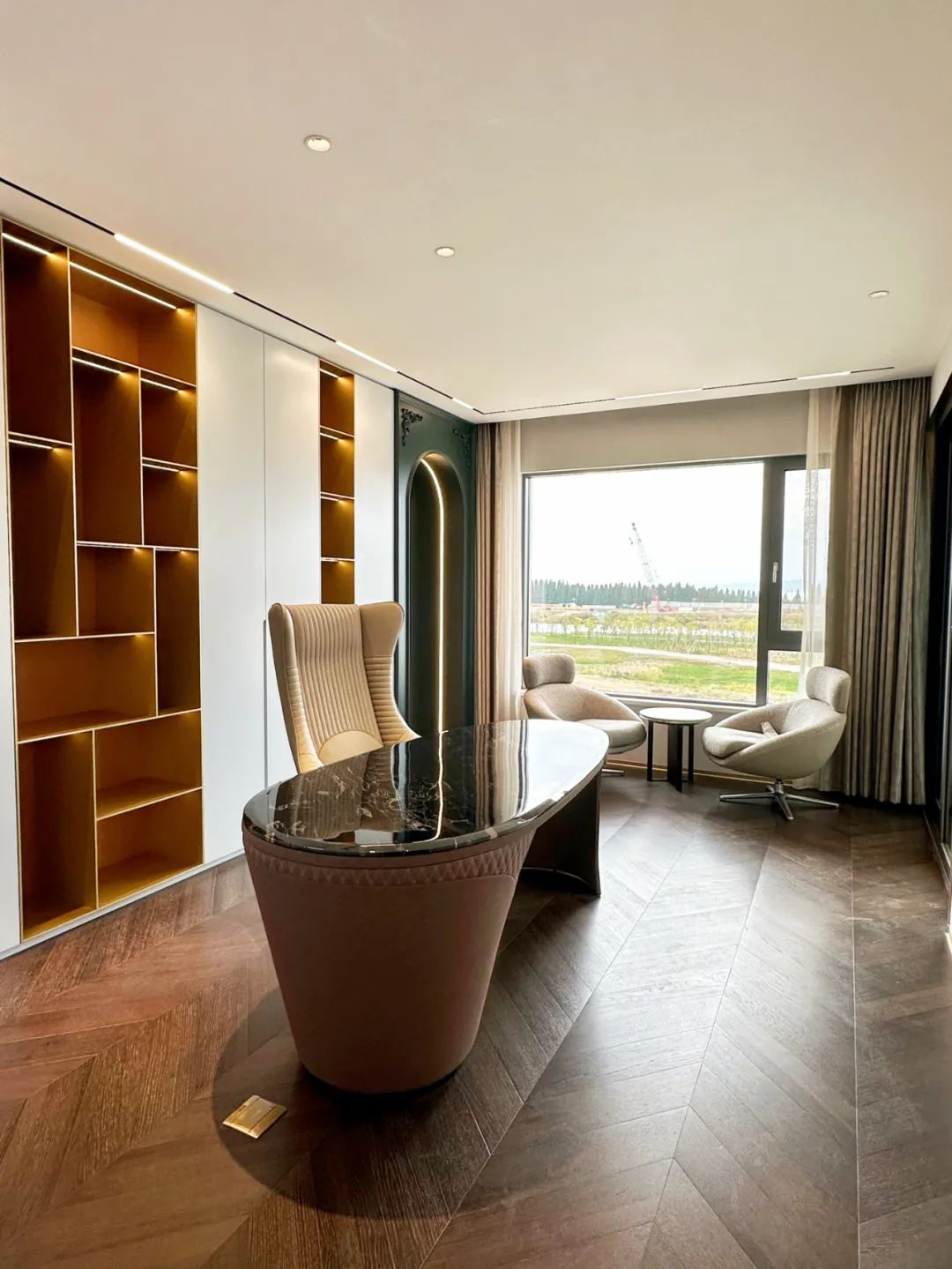 书房需要安静,嘈杂的环境很不仅让人心烦气躁无法静心,还会分散注意力。空间设计上选用高端隔音门窗,打造一个安静的氛围,有助于提高工作学习效率,能保持足够的专注度去学习、阅读与思考。