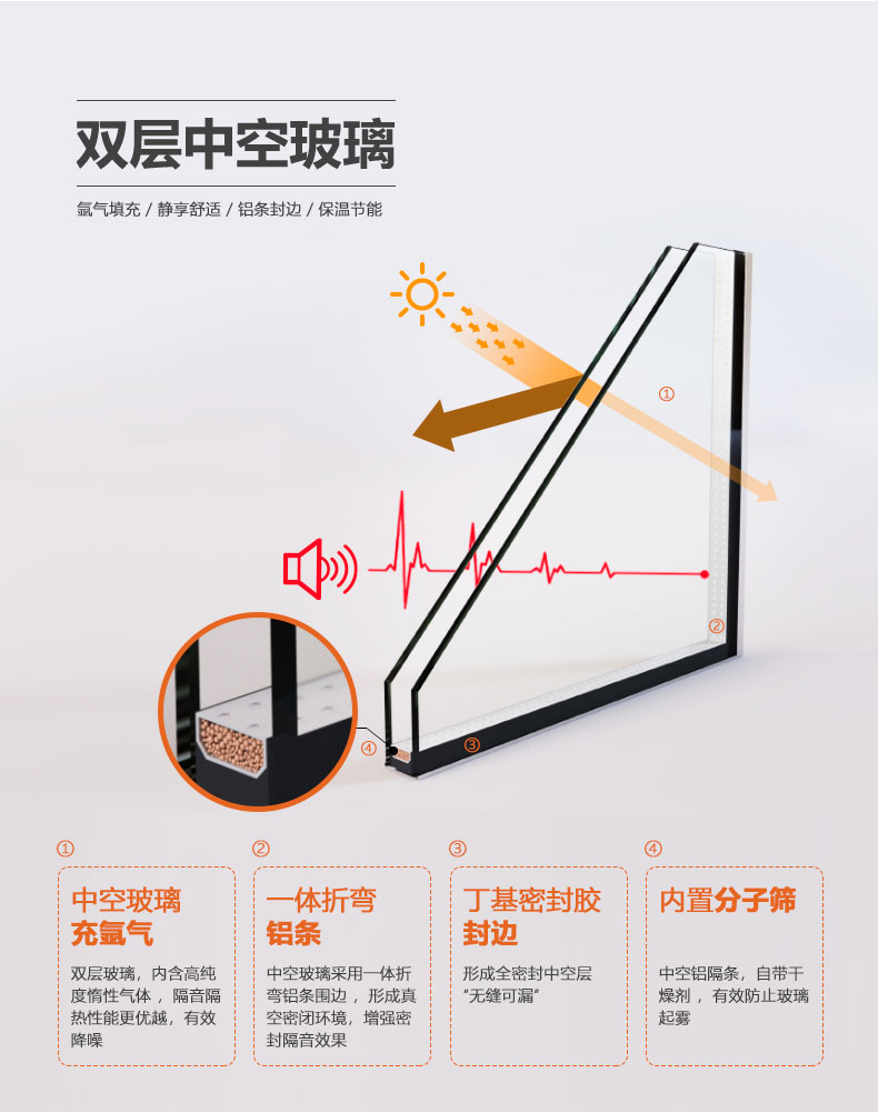 2、汽车级钢化玻璃,内充氬气,有效隔音