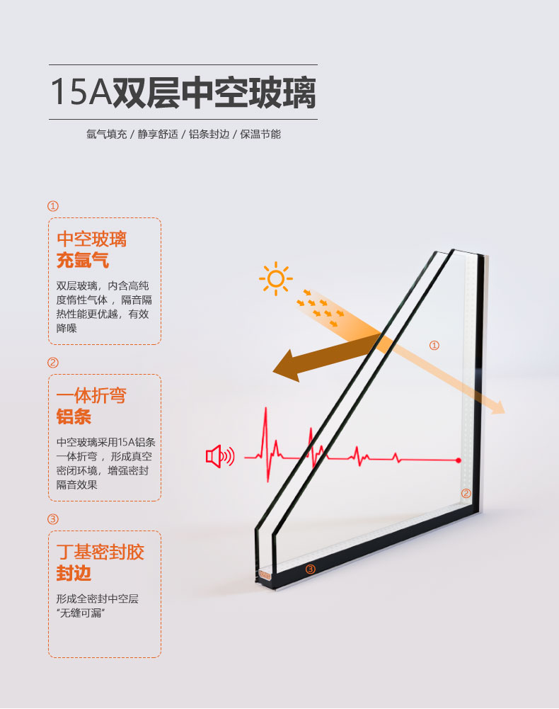 2、汽车级钢化玻璃,内充氬气,有效隔音