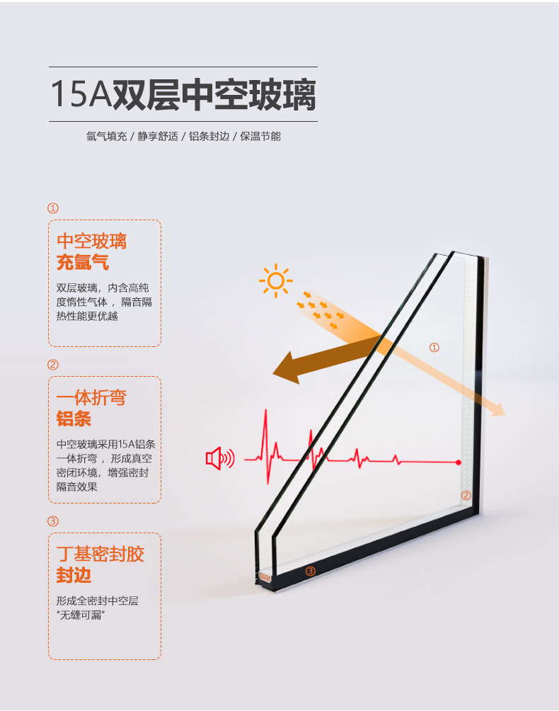 2、汽车级钢化玻璃,内充氬气,有效隔音