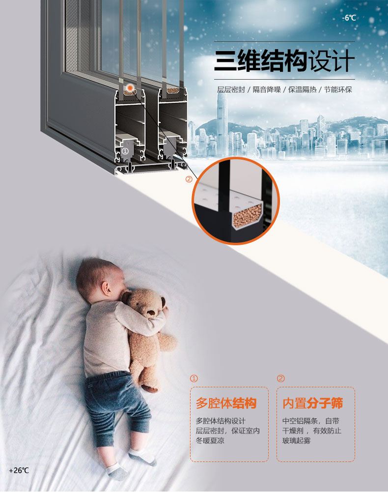 3、多腔体结构,三元乙丙密封胶条,层层密封