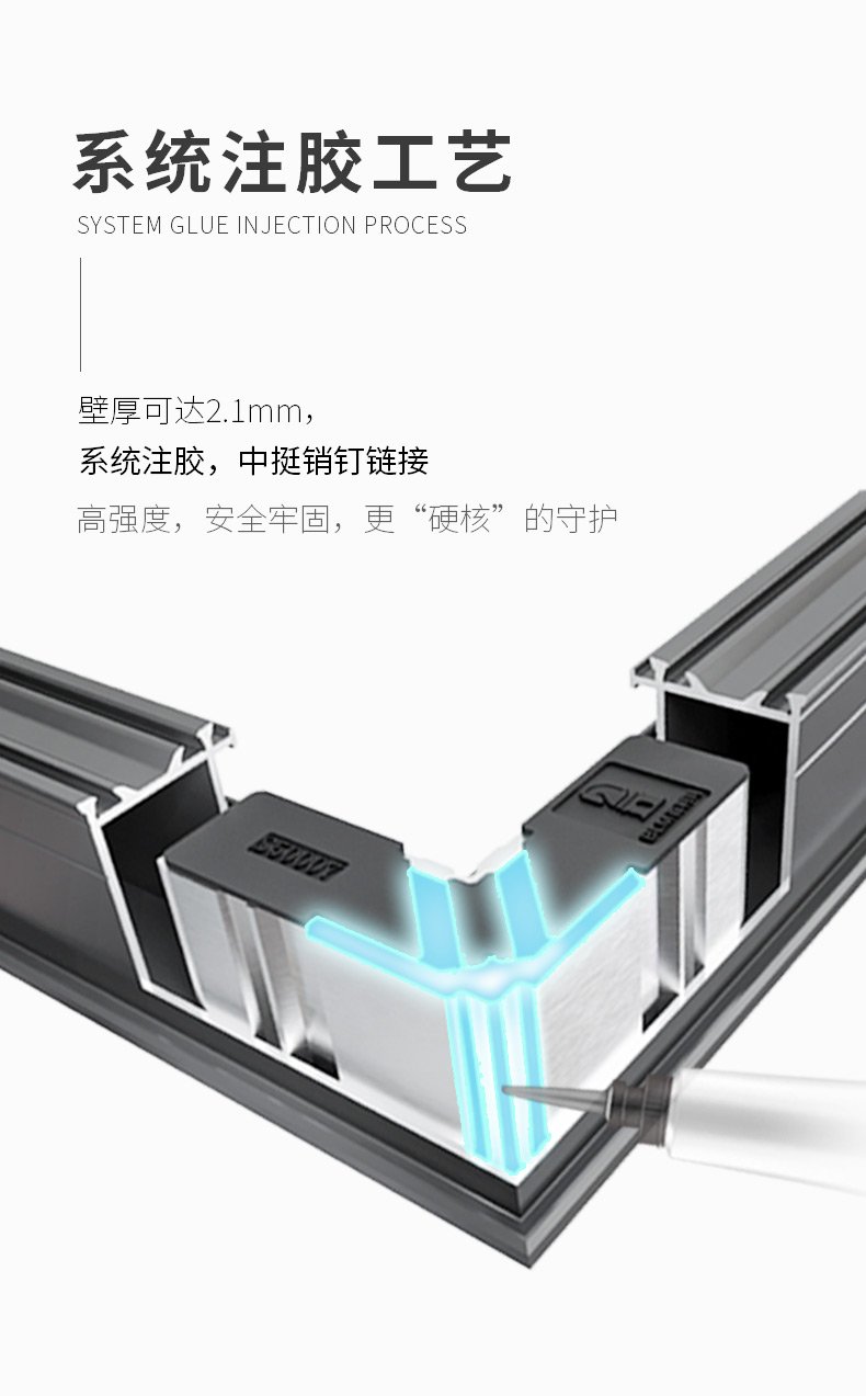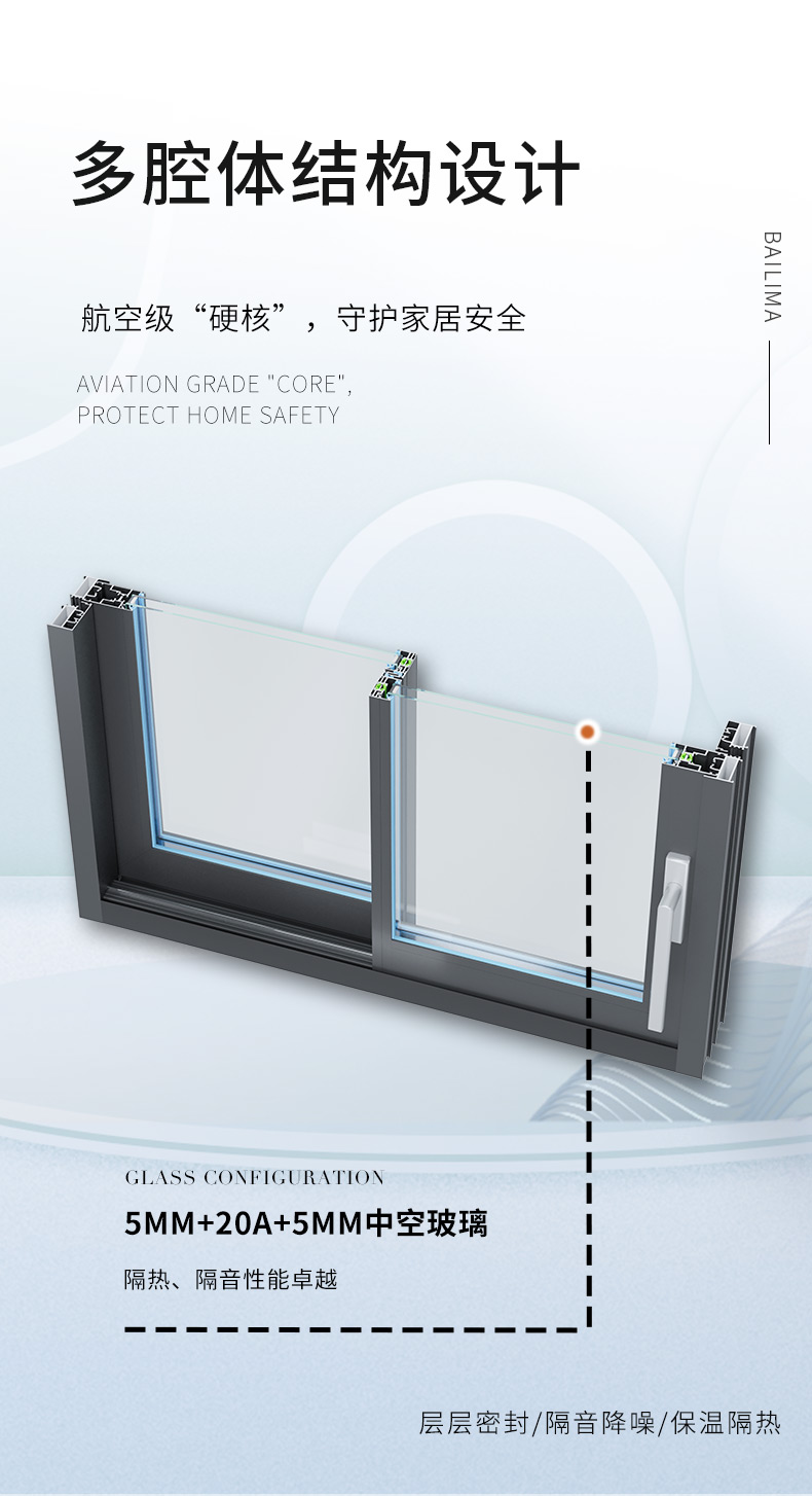 3、多腔体结构,三元乙丙密封胶条,层层密封